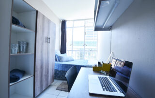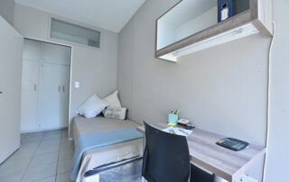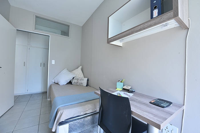 The spacious bathroom has a bath/shower and each bedroom is tastefully furnished with a bed, desk, chair, study lamp and cupboard.